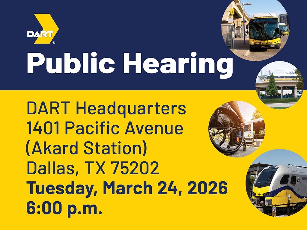 DART invites riders, residents, and stakeholders to attend community meetings, submit feedback, and participate in the formal Public Hearing process during the DART Board meeting that is scheduled for March 24, 2026, at 6 p.m.